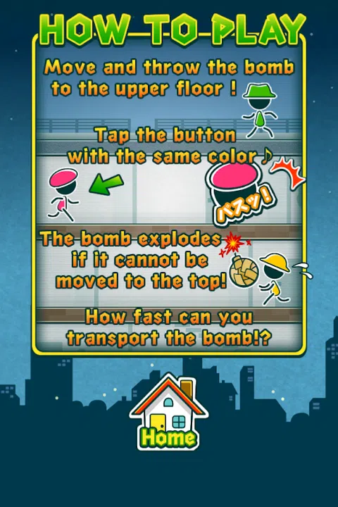 ★☆把烟花抛向天空★☆ 尽快将点燃的烟花运到屋顶! ■玩法 点击与楼上男子相同颜色的按钮,将烟花运上来。 如果你不能及时做到,烟花会爆炸! 如果你点击错误的颜色,烟花也会爆炸