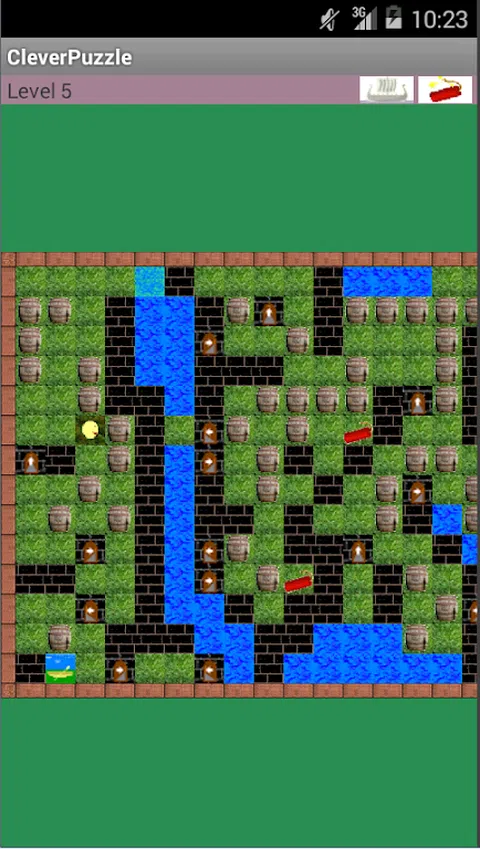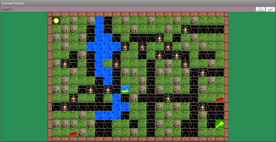 这是一个我们用钥匙移动元素到达方块的游戏。可用的项目有: 桶 - 它们可以移动(一次只能移动一个)、扔进水中和弹坑中 水—只有有船才能在水里游泳,否则英雄就会死。 头骨 - 带着头骨穿过田野需要乘船。 炸药 - 允许您炸毁 4 个相邻区域。你一次只能拥有一颗炸药,通过点击英雄两次来放置炸药,再次点击英雄两次后就会发生爆炸。 单侧门 - 您只能按照标记的方向通过。 不同尺寸的板子可以缩放