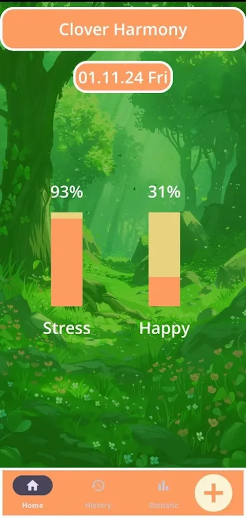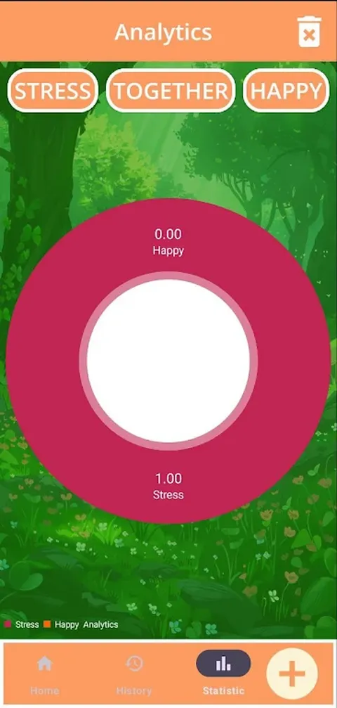 通过简单且用户友好的界面,您可以监控每天的压力和快乐百分比,查看详细历史记录并探索三种类型的统计数据