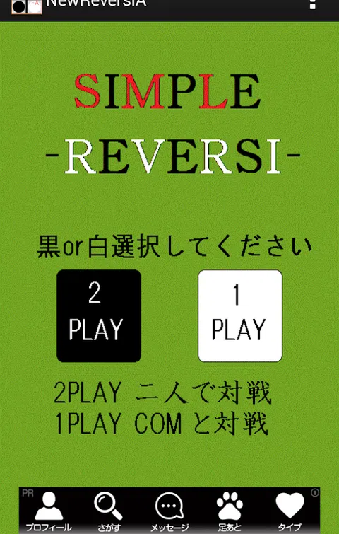 我们做了一个简单的黑白棋游戏。 计算机与战斗模式比较强大的AI将成为对手。 模式有两个人玩,请朋友在黑与白的交替播放