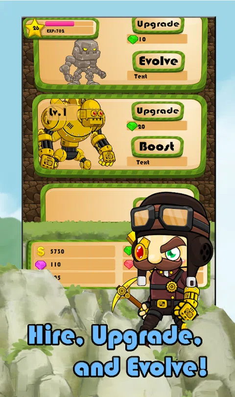采矿从未如此有趣! 雇佣和进化生物来帮助你更快地挖掘! 升级你的角色,挖掘你的财富和财富。 特点包括: ●开采黄金、蓝宝石、祖母绿、黄玉、紫水晶和超稀有马铃薯 ●雇佣友好单位为你挖掘,如蜗牛和石傀儡 ●多次进化,变得更加强大 ●点击你的方式获得高分 ●适合任何年龄的可爱图形 ●解锁特殊能力,如食人或宝石爆破 ●用特权升级你的英雄,更快地挖掘 ●为您的矿工解锁独特的角色皮肤 ●定期添加新成就,解锁大量成就 ●完全没有等级上限。永远点击! ●重置您的分数以获得永久提升 今天点击或点击你的伟大之路,用宝石和黄金装满你的口袋!免费下载。 检查我们