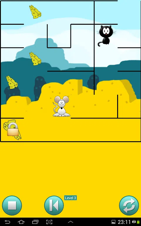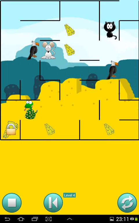 老鼠必须在迷宫猫中找到奶酪。你能帮他找到他们吗?如果你找到它们,大奶酪将提供给你。 但请注意,在某些关卡中,有一只猫在迷宫中奔跑。如果猫先拿到那块奶酪,你就输了。 还有一个非常困难的关卡,还有蛇和鸟在迷宫中穿行