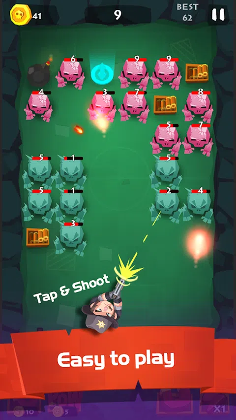 Zombie Breaker 是经典的举起和打破砖块游戏的绝佳升级版。 与时间杀手的冠军一起放松你的大脑! 滑动手指射击子弹并杀死僵尸和怪物。 尝试在僵尸向下移动到底部之前杀死尽可能多的僵尸。 收集所有硬币以获得更多角色 每次射击后怪物的等级都会增加。 很容易玩,但很难达到高分。别忘了角度是重点