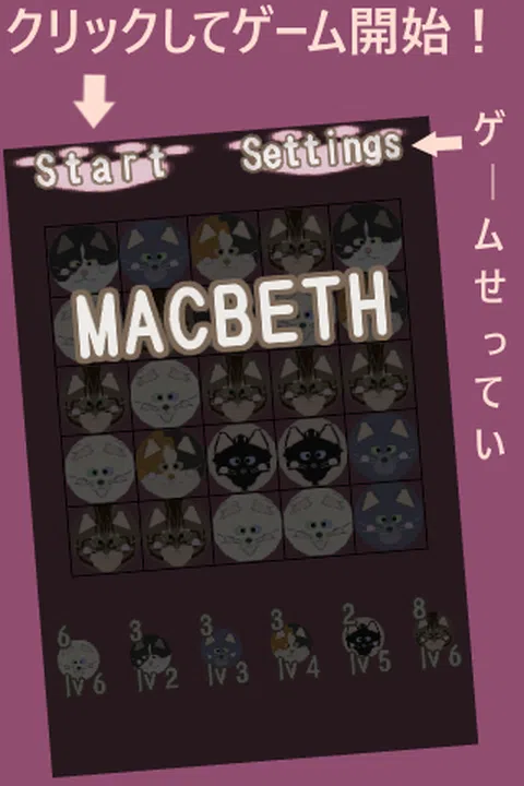 Tamaneko DE麦克白(麦克白)的竞争棋盘游戏的原创! 此外丰盛了吴年温在Tamaneko性格也推出了! 这是扭转帧奥赛罗或黑白棋一个简单的简单的规则。 基本是赢得许多人的数量继续把碎片,以便在8×8板。 ※1.0.0版中的8×8的鳟鱼,后期攻击(白色),CPU强度3级(黑色),你现在可以设置多! [法治] 我把一块大规模空置在轮到自己。 (无处不在可能的) 昏迷周围的鳟鱼鳟鱼8你放小费。 (对手也是他们的框架图也帧) 的顺序被转移到另一方。 重复,直到所有的免费质量被淘汰。 赢得对决赛中,很多框架(颜色,字符)! 设置 ·[瓷砖]改变角色的昏迷和颜色 ·[声音]首歌曲,在音效/关闭 ·[尺寸]尺寸的板变3×3〜21×21 人2-6对面站泰森多少·[玩家]变化 ·[1号〜6]对手CPU(LV0〜6)和(大强)的人(人)的强度 您可以通过箭头[。 Tamaneko DE麦克白(麦克白)改进吴年如水平翻转模式