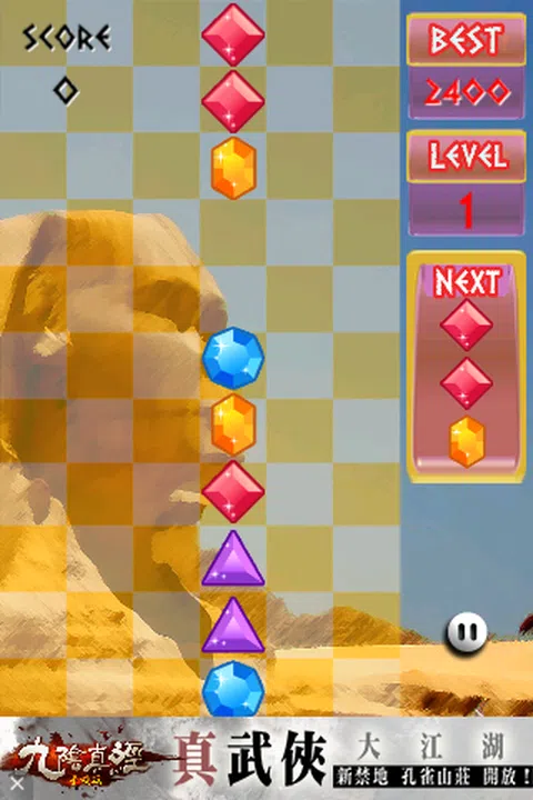 钻石方块 是一只非常简单游戏,只要上下左右或钭行”,有三个以上同色的钻石 ,便会消除。连锁消除,会得更高分