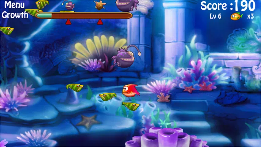 - 在游戏 Feeding Fish Frenzy - Ocean 2016 中,您可以参与小鱼的残酷生存之旅。比摧毁弱者的意志更强大的地方。喂鱼是一款丰富多彩的安卓动作游戏,可让您潜入水下环境。 - 你在疯狂喂鱼中的目标是消灭鲨鱼王。要做到这一点,你必须避免被不断被扔在你路上的各种海怪吃掉。你唯一的武器是你的胃,所以尽可能多地吃,因为它在 Feeding Frenzy Fish 阴暗的环境中被吃掉或被吃掉。孩子们会喜欢卡通风格的图形,以及快速而激烈的游戏。您可以收集能量提升,让自己在前进时获得一点能量提升。它也会让一些用户看到他们角色的肚子越来越大 随着它们越来越接近鲨鱼王和终极对决,它们变得越来越大。虽然喂养追踪器中的图形很可爱,但它们可能不会给经验丰富的游戏玩家留下深刻印象。在两种令人兴奋的游戏模式中躲避掠食者并沿着食物链向上吃!华丽的新水下环境,活泼的新鱼,以及12个令人垂涎的乐趣,喂金鱼比以往任何时候都更加疯狂