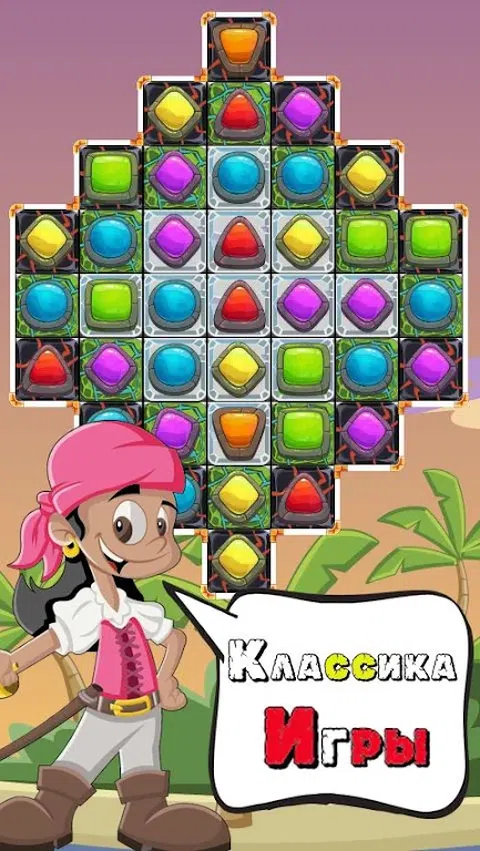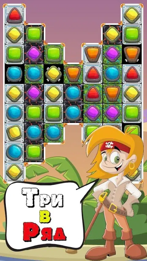 将三颗或更多颗相同的石头连成一排。获得奖金。游戏本身发生在“三连冠”类型中,其本质是交换相邻的2个元素,从而获得一排3个或更多相同的石头
