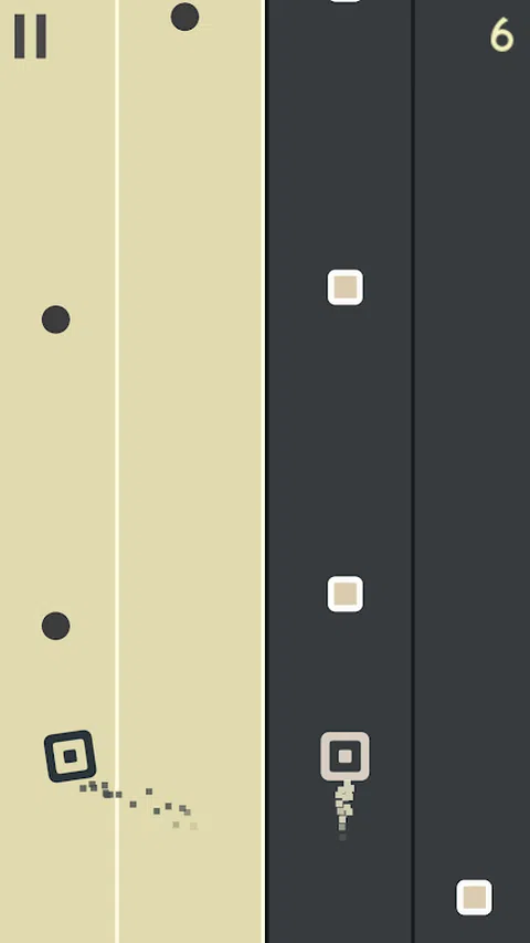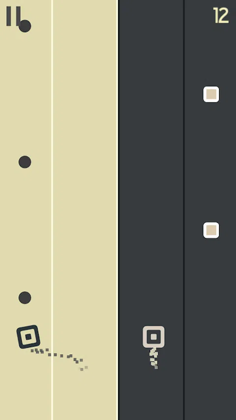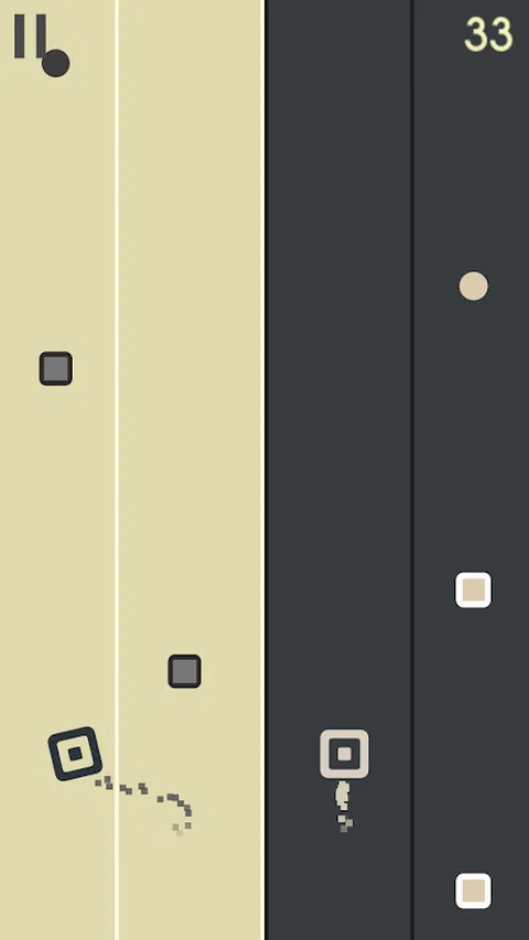 同时控制白色方块和黑色方块。 收集所有圆圈并避开路上的障碍物