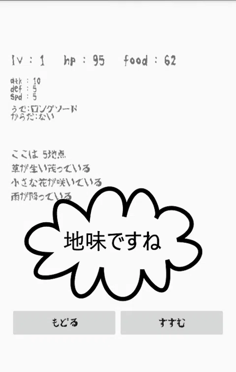 ■ 怎么玩 总是有两个选择 这是一个在选择其中一个的同时进步的角色扮演游戏 前进,返回 吃不吃 休息,不休息 战斗,逃跑 在食物(时间限制)用完之前 与更多敌人战斗并获得经验 借助强大的设备,您将一路发现 让我们向前推进 此外,具有自动保存和自动加载功能 您可以在短时间内轻松玩 ■ 提示 ·很朴实 ・没有故事,小结局 ・自动保存,自动加载 ·我不忙 ・目前生长因子有限,很容易感到厌烦 ・体积较小 ・将来可能会改进这些事情 ・仓库中的物品可以通过长按和点击来丢弃。 ■ 作者的感受 我认为这会更有趣一些 我会继续努力发展。 目前。 ■ 备注 这项工作仍在开发中 更新时可能会初始化播放数据,恕不另行通知。 请注意。 ■ 致谢 我正在使用 Ankoku Koubou 的免费恐怖字体“Hakidame”