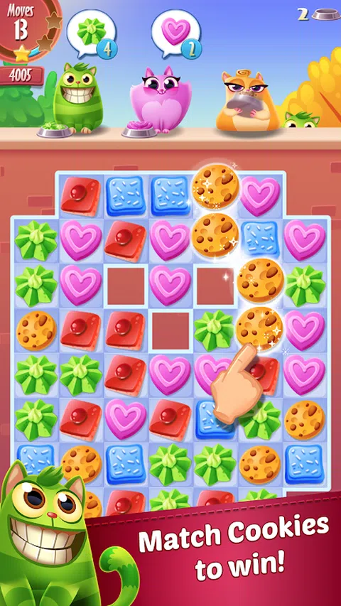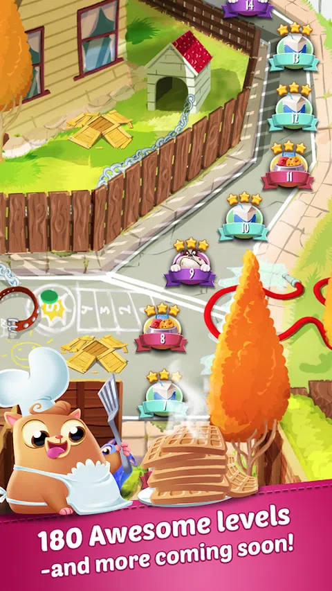 邻居家的猫很想吃饼干,只有你能帮他们!与 Belle、Ziggy、Smokey、Rita、Berry 和无数其他可爱的小猫一起穿越可爱的新地方,那里的饼干正等着吃。准备好在这款猫睡衣的免费益智游戏中连接五颜六色的饼干,击退大坏蛋,并结识新的喵星人! 特征 • 简单而令人上瘾的益智游戏!连接相同颜色的饼干,做成美味的链条! • 在六种不同的游戏模式和数百个具有挑战性的关卡中尽情玩耍! • 挑战你的朋友!你能打败你的朋友purrfect高分吗? • 很多可爱的小猫会为你唱动听的歌曲!结识新角色并自定义您的乐队。善待你的猫科动物朋友,他们也会给你款待! • 你能打败老板吗?使用你的饼干来对抗流口水的狗巴斯特、生日熊鲍比、食肉植物艾薇和许多其他人。如果你幸运的话,他们甚至可能改变主意并加入你的乐队! 我们正在努力用新的关卡来更新游戏,我们确信这些关卡会让你变得很棒!已经玩过并喜欢这款游戏了吗?请继续关注更新并花时间给我们留下评论:) 您也可以通过以下方式找到我们: 谢谢你,以后再找你