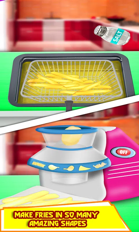 土豆小吃,是最美味的快餐,包括热烈的炸薯条,酥脆的土豆楔子和华夫饼,直接从油炸锅,但等待这一次,新的和开箱即用的想法!你说对了?是的,它烹饪这个惊人的街头食物,马铃薯小吃彩虹色,紫罗兰色,靛蓝,蓝色,绿色,黄色,橙色和红色。用油炸和装饰您的街头食品炸薯条与惊人的食物颜色的彩虹。用芥末酱,酱油酱油,酱油,辣椒酱和蓝莓浆调制出令人惊叹的彩虹色调。烹饪你的彩虹薯条,就像普通炸薯条在油炸锅中煮熟一样,并将炸薯条装入这些惊人的调味汁,给他们一个彩虹的改造。在这个彩虹狂欢节公平食物制造商游戏中,在油炸锅中烹饪丰富多彩的美味小吃。 菜单: 彩虹炸薯条 彩虹华夫饼 彩虹土豆楔子 *彩虹酥脆薯条 学会使用马铃薯油炸锅和油炸这些惊人的五彩炸薯条。学习如何使用油炸锅完整的乐趣,不要忘记你的颜色。成为这次美食嘉年华的主厨