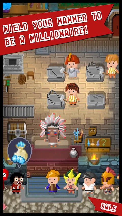 《锻冶屋英雄谭》是一款融合了经营、策略、RPG、放置玩法的模拟经营类游戏。玩家将扮演一家武器店的老板,研发武器、招募员工,安排挖矿、探索、锻造等任务,并向英雄出售武器,以帮助英雄打败一拨又一拨强大的魔物。 经商盈天下,武略定山河 · 扮演锻冶屋老板,养家糊口、发家致富。 · 合理安排员工职能,超多岗位虚位以待,如何达到利益最大化? · 与各路勇士携手闘魔物,排兵布阵,拯救世界。 · 行业竞争天台PVP模式,谁才是世界第一锻铁王? 人物模型层出不穷 · 几百位原创角色,各具特色的人物造型等你发掘。 · 恶搞经典,总有几个人是你熟悉的样子。 · 更有最终隐藏大将,谁才是真正大英雄! 神兵利刃全靠自己,书写全新兵器谱 · 上千款武器可供打造,海量模型任你选择。 · 刀剑棍棒、各路神兵,更有诸多匪夷所思的道具存在。 · 锻造公式需自行推敲,更具趣味。 为手机而生的游戏 · 单手操作即可制霸世界。 · 像素风画面与手机完美契合。 开服礼包来就送 · 开服大礼包,大量斗魂来就送 · Facebook大礼包,助你轻松发家致富 全新的相克概念,让每一把武器都有其独特的存在价值