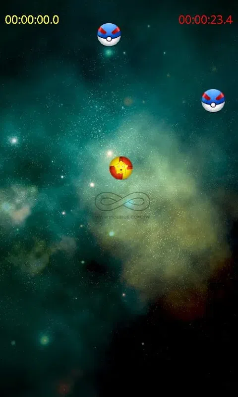 点击空场开始比赛:一个黄星球立即改变方向点击位置,一些坏球开始淡入场内
