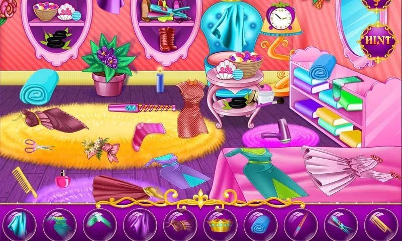 嗨,女孩们。玩这个新的女孩游戏,你会遇到一个可爱的被宠坏的公主,她想出去,但她的房间很乱,在打扫之前她不能去。你能帮她一把吗?环顾房间,找到所有物品并将其放在原处。在那里你会看到很多必须整理的衣服,化妆品,化妆品,鲜花和更多其他私人物品。尽可能快地找到所有物品,然后去换装环节,你必须为我们的女孩选择一个新发型,还要为秋天的一天选择一些时尚服装。玩这个新的凌乱房间游戏,尽情享受吧!免费