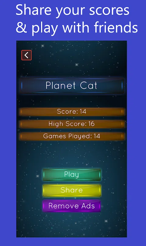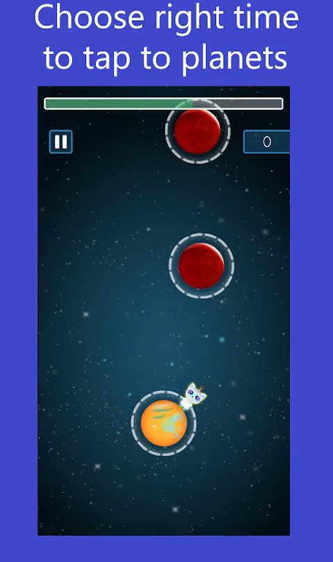 星球猫是一个了不起的和无休止的游戏,你可以放松和测试你的敏捷性和正确性。 点击屏幕上,帮助猫跳过去在太阳系行星拿到分数尽可能多。 您将通过定时器,行星和障碍的轨道速度的挑战。 大更多的功能: - 美丽的图形和效果。 - 支持所有Android手机和平板电脑。 - 综合排行榜将帮助你你的分数比其他球员。 让我们一起来欣赏地球猫的自由和请不要忘记评价我们的游戏