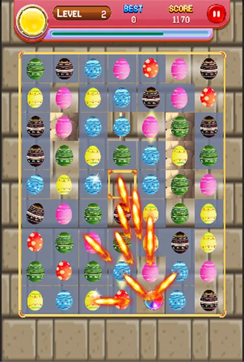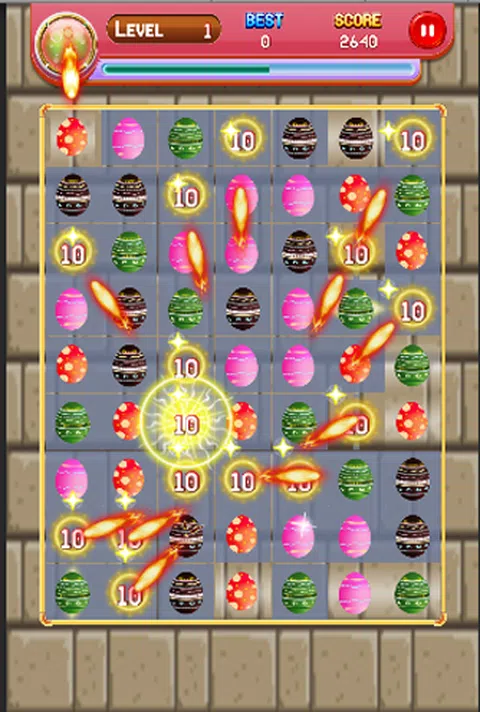 “在连续或列匹配蛋游戏中享受匹配蛋 3 的乐趣。* 怎么玩 * 用手指触摸并滑动蛋以改变其位置。 您可以将 3 个或更多的鸡蛋放在同一条线上进行水果交换! 通过擦除鸡蛋获得积分。您可以制作更长的鸡蛋链以获得更多积分! Egg Match 是一款适合所有人的简单益智游戏。你的目标是排列同一种鸡蛋。 这也是一个非常有挑战性的练习反应速度的游戏。 Egg Line 是 Egg 益智和休闲游戏的传奇,适合儿童、幼儿、手机和平板电脑。连接五颜六色的水果线,在这个益智冒险中解决难题