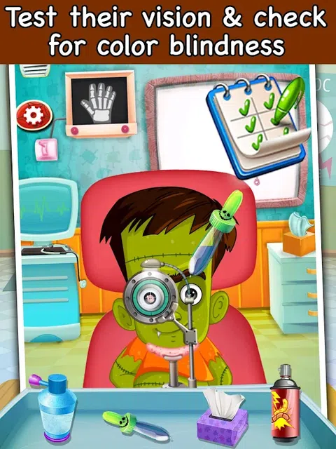 帮助这些怪物治愈他们的眼睛,通过不同的眼科测试并检查他们的视力和色盲。使用不同的特殊医疗工具照顾他们,就像真正的眼科医生一样。 特征 : - 检查视力。使用带有字母的视力表来测量怪物从远处看东西的能力。 - 选择一些怪异的彩色镜片和眼镜。 - 诊断色盲。 - 选择正确的水果颜色。 - 治疗眼疾。使用显微镜寻找眼睛中的灰尘和颗粒。 - 使用眼药水治疗发炎的红眼。 - 享受有趣的小游戏来测试视力。 - 儿童教育角色扮演游戏 - 像真正的医生一样使用医疗工具 - 特殊的现实生活中的医疗工具 - 友好的高清图形与生动多彩的对象 治疗他们的眼疾,让他们感觉更好。快点,他们要去参加万圣节派对