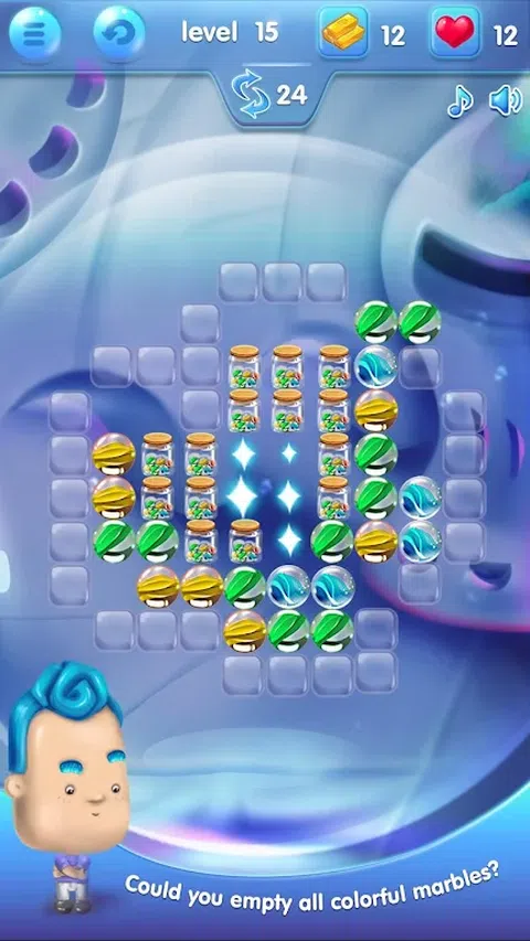 The Marble 是一款了不起的益智游戏! 你能仅通过旋转玻璃罐来清空所有五颜六色的弹珠吗?在有限的轮换范围内完成 The Marble 中的关卡是一项具有挑战性的任务。 怎么玩—知道规则很简单: - 发现每个级别的所有隐藏角色 - 注意固定旋转并清除罐子中的所有弹珠 - 当您无法通过多次旋转清除所有弹珠时,游戏结束