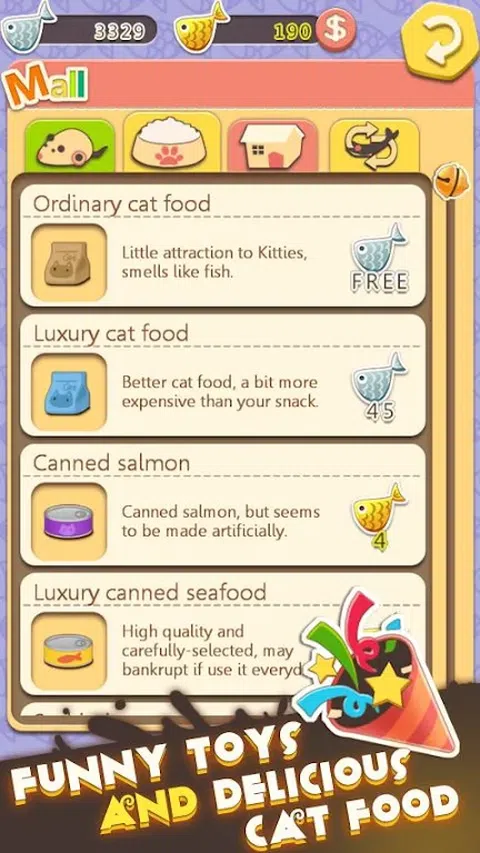 世界上有很多流浪猫,它们很可怜但很可爱。我们是设计这款游戏的一群人,希望所有爱猫人士都能行动起来,为流浪猫们建造一个温馨的家! -为我们的小猫准备好猫粮!- 为什么小猫想留在你的花园里?你肯定需要美味的食物来吸引小猫的注意!您将需要三文鱼罐头、豪华海鲜罐头和豪华猫粮等等!放置的猫粮越优质,可以抽到的小猫越多! -为我们的小猫准备玩具!- 如果我们只有食物是不够的!这些可爱的小猫需要各种各样的玩具来满足他们的好奇心!将羊毛球、豪华坐垫和充气鸭子放在花园里,看看我们的小猫最喜欢哪个! -获取所有小猫的照片集!- 收集所有小猫并不是一件容易的事。尝试不同的猫粮和玩具,秘密的小猫可能会在某个地方等待加入派对! -意想不到的惊喜- 如果一只小猫喜欢你对待他/她的方式,他/她可能会给你一份礼物作为回报!你想知道它是什么吗?你为什么不下载游戏来找出答案?