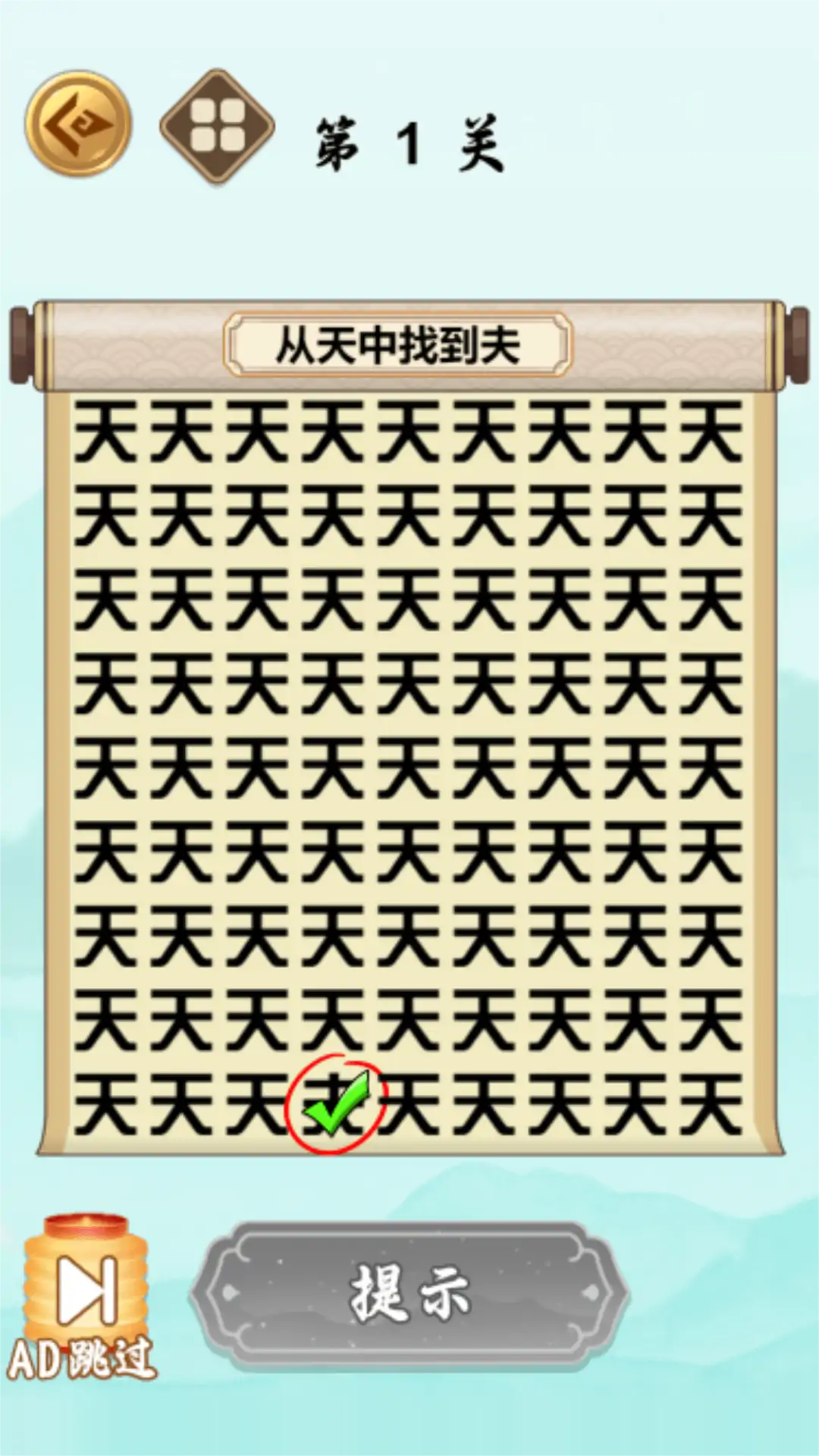 一款休闲类小游戏,游戏的核心玩法为帮助同学在作业中找出不同的那一个字,考验玩家的眼力