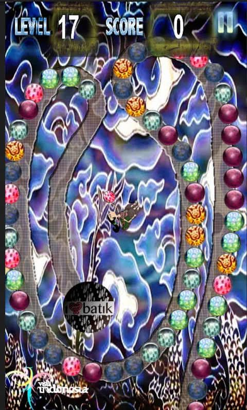 大理石射手蜡染是大理石射手风格的游戏。 这是印度尼西亚蜡染的美妙魅力。蜡染艺术生活在一个美丽的装饰画五颜六色的艺术中。 玩大理石蜡染,让我们保护和热爱文化作为世界文明的高贵遗产。 从你的喷射枪射击球以消除弹珠。 在所有弹珠到达洞口之前把它们扔掉,否则你将成为历史。完成所有级别