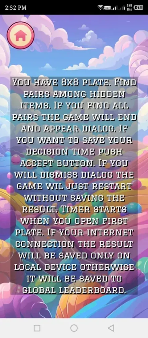 当你与时间赛跑时,每个级别都会挑战你的速度和注意力。游戏结束后,您可以将您的分数保存到本地排行榜,看看您与其他玩家的排名如何。您能成为最快找到配对的人吗?