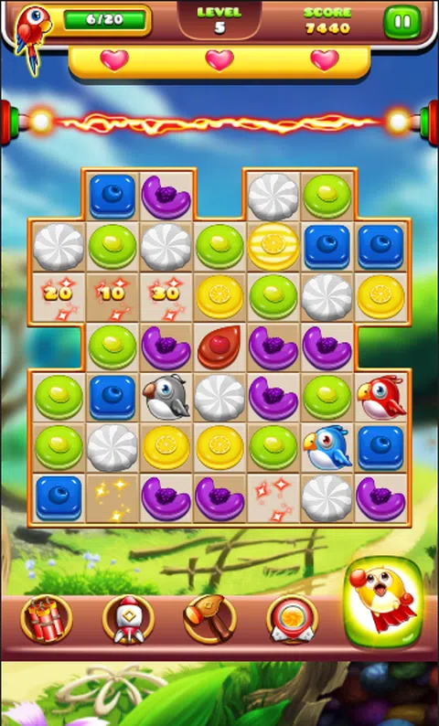 Cookie Dash 三消益智游戏,充满色彩缤纷的糖果和饼干,既有趣又简单 在Android上免费玩! 快来 Cookie Dash 享受美味的饼干和糖果吧! 立即将这款充满糖果和饼干乐趣的 No.1 Match 3 游戏带入您的手机! ★ 奇妙的饼干乐园,300 多个精心设计的免费关卡! Cookie Dash 会更新 免费关卡和游戏模式即将推出! ★ 独特美味的甜品套装,搭配曲奇果酱,每一关的糖果都带给你 吨甜蜜的挑战。 ★ 每日活动和轮盘在曲奇故事中轻松获得数百万奖金。那些 在困难的水平上有很大的帮助!记得每天登录以获取它们! ★ 注意饼干粉碎和你还剩多少步,请不要隐藏你的道具 并尝试它们来帮助您获得更高的疼痛! ★ 让我们体验甜饼干和糖果的乐趣,用自己的方式制作美味 曲奇物语传奇! 怎么玩 ★你只需将鸟和饼干排列成相同的颜色来拯救它们,当你拯救足够多的目标鸟时你就通过了关卡。 ★每轮布置饼干和糖果但不救鸟后,小鸟会跳过一条线。如果您的鸟儿没有及早获救,它们将到达避雷线。 3 只鸟不被接受到达避雷线。 ★ 三人一组交换搭配饼干,一举一动三思而后行! ★ 在助推器的帮助下击败艰难的关卡! ★越过关卡的动作越少,获得的分数越高。尝试获得高分并获得 3 每个级别的明星! ★ 有趣且简单易学的游戏,但要精通是一项有益的挑战