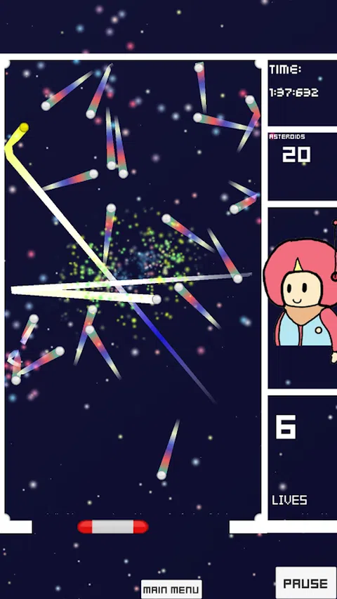不要让小行星逃跑!控制 SpaceBots Ship 并阻止小行星离开虫洞并撞击 SpaceBots 星球! >拖动屏幕上的任意位置移动 >收集额外的生命/奖励积分! >尝试获得10k(简单)30K(困难)100K(不可能?) 收集电源UPS! *绿色 - 额外的生命! *黄色 - 让你的船更大! *白色 - 2500 点和额外的生命! *红色 - 让你的船更小 - 避免! *橙色 - 屏障。 *蓝色 - 慢动作。 *粉红色 - 惊喜