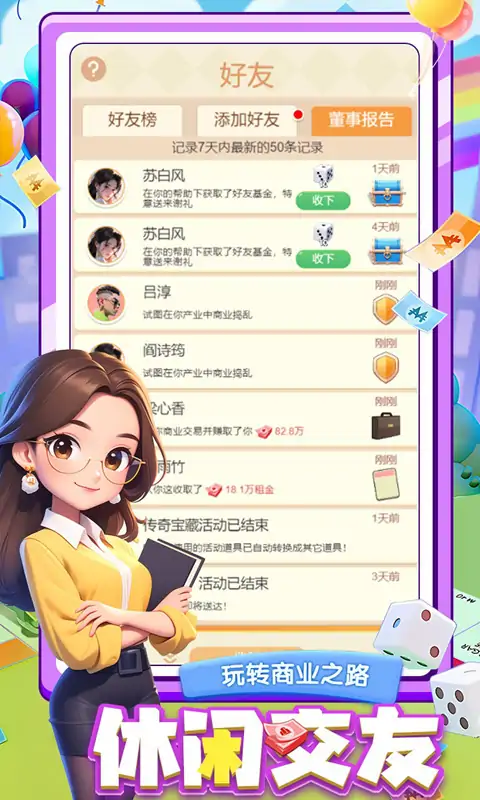 《不差钱》是一款模拟商业经营的棋类休闲手游。这是一个充满竞争的现代化商业时代,您将在这里扮演一位回归豪门继承千亿家业的富豪,与董事会的合作下,通过不断开辟地图建造图标,想尽办法提升富豪身价,争夺富豪榜第一的宝座!豪门风云暗涌,商战一触即发。究竟谁才能成为商业场上的顶级富豪? ———欢迎回归豪门,尊敬的少主 游戏特点: 【玩法丰富 机遇不断】 游戏通过投掷骰子决定移动步数,停留在不同地块可获取不同数量的地产收益,若停留在他人地产则需要缴纳相应租金;地图中还有四大机场,若踩中可对他们产业进行商业捣乱和商业交易,除此之外地图中还有随机商业奇遇、寻宝之旅、好友基金等事件格,在还原经典大富翁机遇玩法的基础上加入了多种趣味元素,增加了游戏玩法的趣味性和丰富程度。 【卡牌收集 轻松护肝】 除了经典的骰子玩法,游戏还加入了赛季卡牌收集玩法。参与日常、幸运转盘,可获得卡包道具,开出随机主题卡牌,集齐每个主题卡组,或集齐当前赛季所有主题卡牌均可获得赛季大奖和限定棋子皮肤。玩家可使用万能卡牌道具获取未获得的卡牌,加快收集进度。另外,游戏中还加入了卡牌交互玩法,玩家可与好友通过交换额外卡牌的方式,减轻集卡负担,从而实现不肝不氪的游戏体验。 【地标建造 身价暴涨】 游戏内开放千张地图建造图标,应有尽有,解锁地标可提高身价等级,跻身富豪榜。努力解锁更多建造图标,抓住机遇,在商业捣乱中破坏他人地标,赚取高额资金,成为首富不是梦!