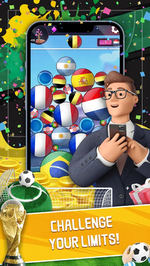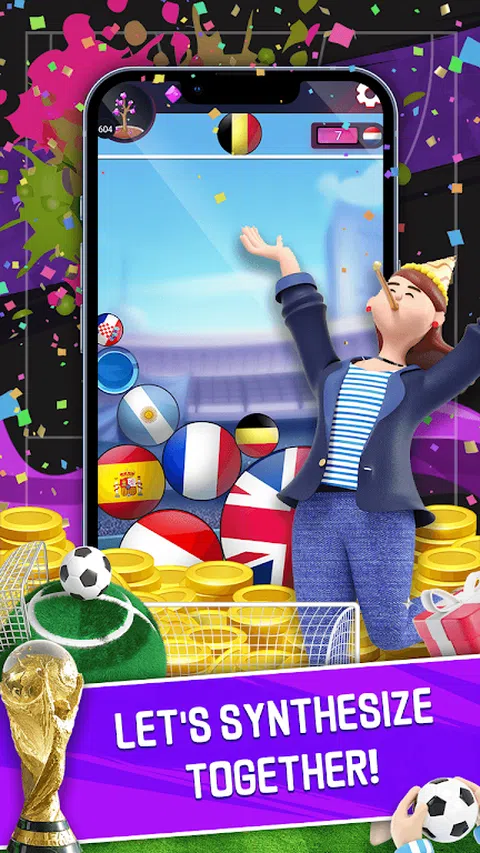 在享受这款合成足球游戏的同时,让自己沉浸在足球游戏中。 游戏玩法很简单,点击屏幕上的任意位置让足球落下,当同一个足球接触在一起时,就可以成功合成。 您需要做的是考虑足球的位置,如何控制足球下落的位置,以便将小足球合成为更大的足球。 注意不要让球溢出屏幕,否则您将不得不重新开始游戏。 喜欢足球的朋友不要错过,看看你可以合成多少个大足球