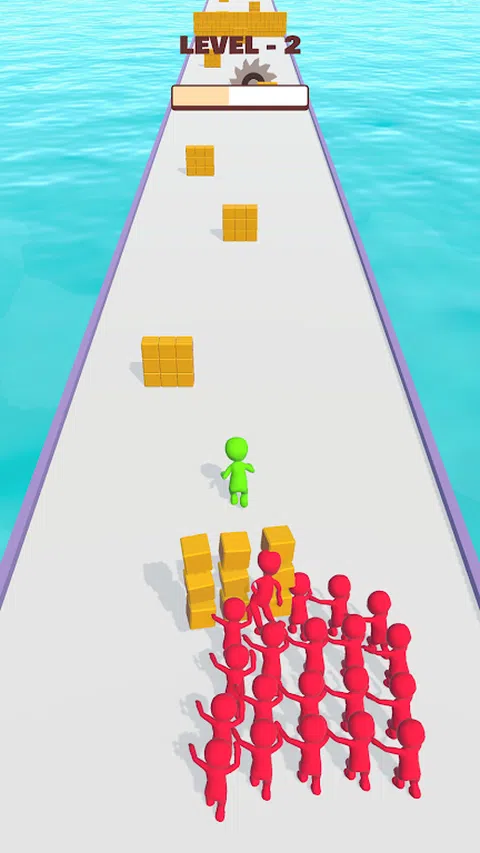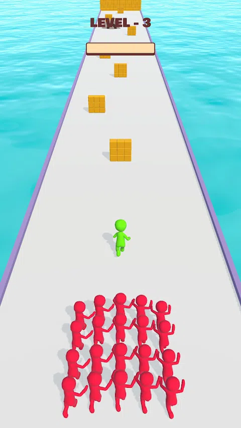敌人正在追赶你,你正在逃命。躲避敌人进入障碍物以杀死他们并减慢他们的速度。如果你撞到任何障碍物,你会减速,敌人会追赶并杀死你。到达终点线,您将获得一个超级武器,用它可以快速杀死所有敌人