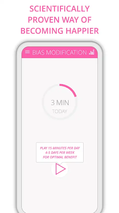 偏见修改是一款让您更快乐的游戏,它得到了科学研究的支持。 通过一次性应用内购买可获得可选的高级升级,该升级将移除广告,允许查看您的进度并播放超过一分钟的回合。 为了尽快修复错误,请使用游戏帮助屏幕中的“反馈”按钮。您为重现错误提供的(和精确)信息越多,修复的速度就越快。 什么是认知偏差修正 认知偏差修正(CBM)已被证明有助于克服关注负面或威胁性社交线索的倾向。CBM 通过让您反复选择正面信息而不是负面信息来实现此目的