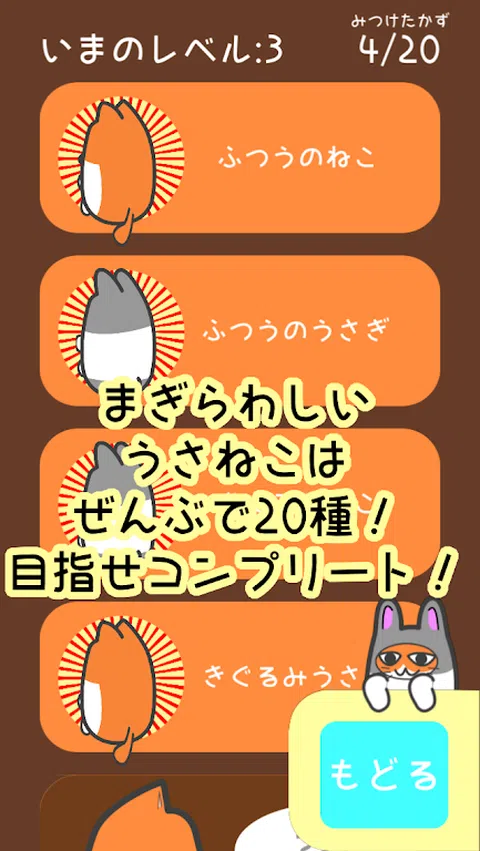 尽可能准确快速地对一个接一个出现的兔子和猫进行排序。 出于某种原因,兔猫穿着服装,即使它们是兔子,也有猫一样的尾巴,有时它们的身体是透明的(为什么?)。 为了准确地分离出这样一只兔猫,你只需要用手指旋转它并仔细检查! 准确、快速、随意, 让我们滚动兔子猫,并以成为世界上最好的shiwakenist为目标。 你能认识各种兔猫吗! ? + 游戏特色 + ○ 区分兔猫的简单规则 ○ 兔猫越来越多。你能找到所有的兔子猫吗! ? ○ 配备互联网排名。与世界各地的竞争对手一较高下,力争上游