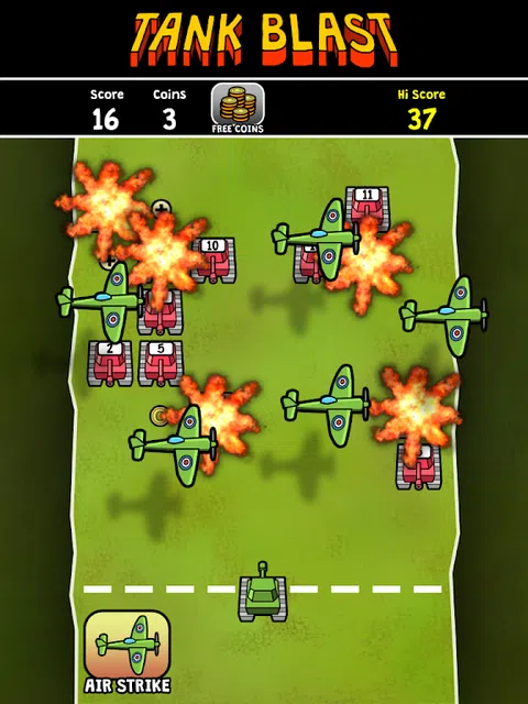 在这款激动人心的回合制打砖块游戏中,对抗一支红色坦克大军。 收集更多的球并向敌方坦克发射一连串射击。 无尽的游戏玩法 - 不要让敌人的坦克进入你的领土! 收集硬币并用它们购买对敌方坦克的空袭。 回合制的破砖动作! 怎么玩: - 向敌方坦克开火。 - 每次命中都会降低敌方坦克的力量,直到它们被摧毁。 - 收集“+”符号以增加射击次数。 - 收集金币并将其用于对敌人的空袭。 - 如果敌方坦克进入你的领土,游戏就结束了