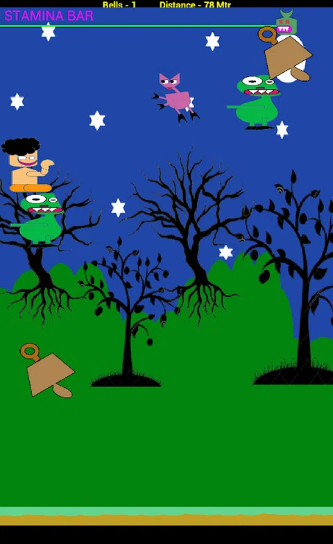 巴巴吉和图鲁游戏 1.0 版 这是一个简单易玩的游戏,适合每个人。 2. 悬停在空中,尽可能走多远。 3.不同种类的thullus。 4.解锁并选择你喜欢的babji皮肤。 5.最佳时间杀手。 6. 出色的用户界面。 7.漫画风格的图形。 8. 最适合各种年龄段和孩子。 这是业余时间创造的早期游戏创意