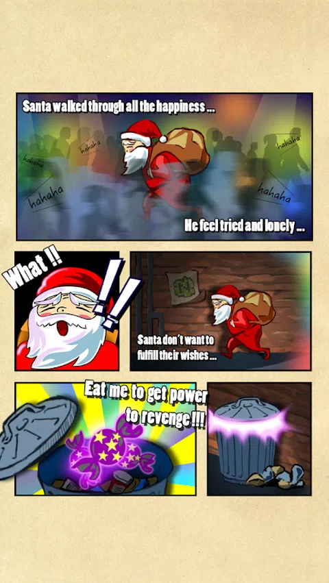 你想要它,你要它,现在它终于来了—圣诞老人不开心! 你必须玩这个游戏,因为: ● 免费 ● 圣诞老人今年不开心! ● 你可以帮助圣诞老人对每个人恶作剧! ● 您可以了解圣诞老人是如何变成恶魔的! ● 每个人都在玩它并且喜欢它! 圣诞老人在圣诞节期间不开心。他非常绝望,不会给每个人他们想要的圣诞礼物。相反,他给了每个人不想要的东西! 相机、火鸡、自行车、智能手机和所有您最喜欢的圣诞礼物都可以作为礼物送给街上的每个人。邪恶的圣诞老人选择给人们所要求的相反的东西,真是个家伙! 这个游戏真的很容易玩,你只用一根手指就可以控制整个游戏。 那么,你想玩吗?地狱是的