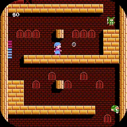 玩家通过奔跑、跳跃和射击泡泡来控制艾伦。玩家从一座名为 Castle Garland 的四层城堡的底层开始,他必须一路向上,搜索三个主要楼层、水井、两个侧塔和最顶层。如果玩家在城堡外停留的时间过长,闪电就会从天而降。 每个故事只能通过击败第一个老板来实现。虽然看起来很简单,但要想接触到老板,唯一的方法就是发现大量的秘密,其中一些需要纯粹的运气或有用的手册。这是因为这些隐藏秘密的“软方块”和只是墙的“硬方块”之间没有视觉上的区别,有时你必须非常具体地确定你必须射击的地方。 有时在你发现物品所在的位置后,你甚至需要在关键物品出现之前浪费时间在关卡中走来走去。这些 Boss 比普通的恶魔大得多,需要很多泡泡才能打败。他们通过来回跳跃进行攻击,吐出夺走大量生命的火球。当一只恶魔怪物死去时,它会保持死亡状态并释放出一个水晶球,有时会使艾伦的泡泡变大并飞出更远的地方。然后可以使用恶魔怪物的房间到达城堡的下一层