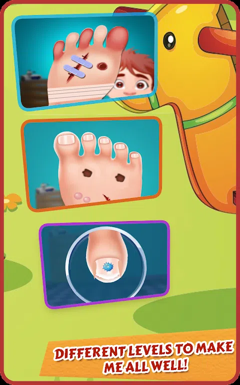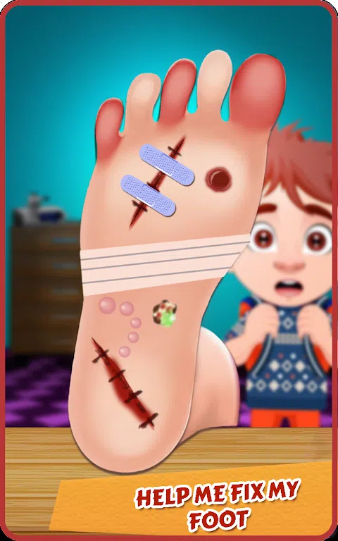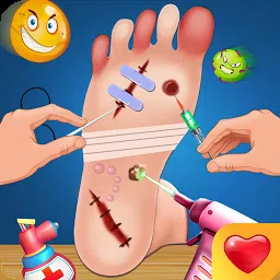 足部应急游戏的特点: • 急诊室环境 • 使用经过消毒的医疗设备 • 对患者进行专业治疗 • 处理伤害以修复它们 • 像专业医生一样打扮伤口