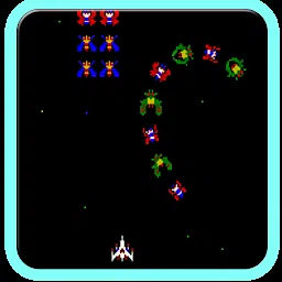 Galaga 的目标是通过消灭昆虫般的敌人来获得尽可能多的分数。玩家控制一个星际战斗机,它可以沿着运动场的底部左右移动。敌人在屏幕顶部附近成群结队,然后开始飞向玩家,向他们发射子弹并试图撞向他们。在后期阶段,一些敌人甚至会从进入的队伍中脱离出来,疯狂地试图撞向玩家。当玩家的最后一名战士因与敌人碰撞、被敌人射击或被俘虏而丢失时,游戏结束。 游戏结束时的“命中/未命中率”统计数据,以及每隔几个阶段出现的奖励“挑战阶段”,其中一系列敌人以设定的模式飞入和飞出屏幕而不向玩家的船开火或试图撞上它。当您消灭一群敌人时,您将获得 1500 分。如果玩家设法消灭每个敌人,这些阶段将奖励 10K 点奖励,否则每消灭一个敌人将获得 100 点奖励。游戏的另一个特点是让敌人随机变换并组织成一定的阵型,如果他们成功摧毁它,就会奖励玩家奖励积分。 *注意:本游戏不支持安卓8