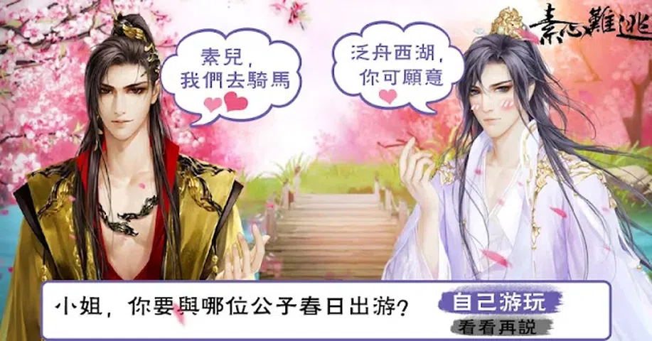 女扮男装成公子,因师父的失踪而开始寻找神秘人物、踏上迷雾重重的寻师之旅。 剧情推进合理、情节紧凑,每个人物的身份都很特别且联系紧密,角色隐藏的身份时常让人恍然大悟,女主与师父的恋爱更让人揪心。总之,这是一部会让你甜到哭、虐到哭、笑到哭的古风江湖、恋爱江湖的佳作。 四个性格迥异的男主,四个完全不同的结局,多条支线等你探索。 另有专为此游戏定制的主题曲及MV,欢迎品鉴