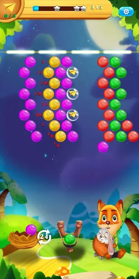 在 Fox Bubble Shooter 的救援路上匹配、爆破和破灭泡泡! 一个女巫绑架了野兔并占领了野兔的村庄。住在村里的狐狸想救兔子。但是气泡和冰块挡住了他的去路。你需要爆破所有的泡泡来帮助狐狸。您收集的星星越多,您可以拯救的野兔就越多。在这个泡泡射击益智游戏中,尽可能多地破泡泡,穿越村庄。 怎么玩? 通过将泡泡与独特的瞄准线相匹配来拯救野兔并收集纸飞机,让您能够以神奇的精确度折叠和弹出!射击并匹配相同颜色的泡泡以使其坍塌。在这场爆炸性的泡泡射击冒险中解开谜题,拯救村庄。 您唯一需要的泡泡射击游戏! 狐狸泡泡射手特点: • 在这场神奇的解谜射击冒险中连消 3 个泡泡 • 引人入胜的游戏模式和可爱的角色! • 准确的瞄准线和彩色泡泡! • 释放野兔和整个村庄! • 特殊助推器可帮助您通过那些棘手的关卡 • 收集星星和纸飞机。 • 一款免费且易于玩的泡泡射击游戏,极富挑战性