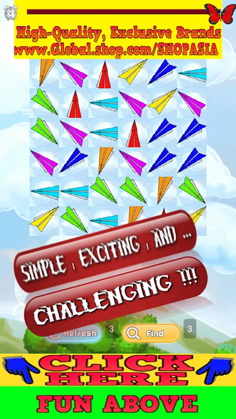 The Paper Plane Games Free 是一款限时三轮配对游戏,包含幸运红纸飞机游戏、海蓝纸飞机折腾、永恒绿色纸飞机模拟器和亮黄色纸飞机 3。免费纸飞机游戏的第一轮免费下载是100 秒和之后的每一秒都减少 10 秒,因此将有时间改进每一轮免费纸飞机游戏的倒计时游戏计时器。 免费纸飞机游戏的另一个令人兴奋的功能使它比匹配的升级纸飞机游戏更棒 - 你必须找到以某种方式在一起的图标!当您进行匹配时,纸飞机游戏将显示。您还可以在 Paper ar Plane Games Free 中获得一些帮助。您可以使用 REFRESH 按钮 3 次刻录,这会混淆游戏卡,因此更容易找到匹配项。您也可以使用“查找”按钮 3 次,这将为您找到匹配的。这是免费制作纸飞机并免费下载的方法。如果您正在寻找如何制作简单的纸飞机免费的理想,那就太好了。玩得开心 !
