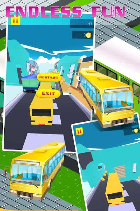 最好的校车模拟器和无尽的赛车游戏为孩子们! Endless Runner 与交通赛车的扭曲,让您获得最酷最可爱的校车乘坐游戏! 通过滑动和躲避许多障碍物和停在镇外的汽车来测试你的反应能力,不要左右滑动上下跳跃,并获得最棒的动力提升,让你的骑行更顺畅! 专为热爱学校的孩子设计!有时,您对学校的印象就是乘公共汽车去学校,那里发生了许多美好的回忆!你的初恋,第一次战斗,第一首合唱歌曲,第一次去最近的动物园,等等! 所以和我们一起重燃那些回忆,上巴士吧!