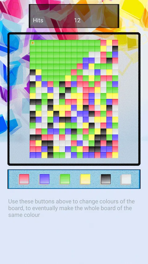 下载这个游戏,玩得开心。 游戏包含一个随机颜色的棋盘。您需要做的就是一次更改一种颜色,以获得相同颜色的完整板。 好吧,这很容易和随意。有趣的是尝试以尽可能少的步骤完成它。 考虑到它的简单性,孩子们会喜欢这个游戏