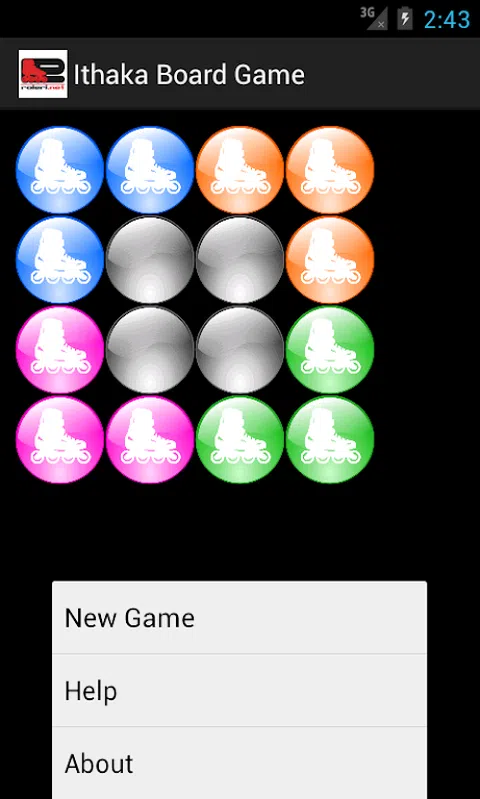 伊萨卡棋盘游戏由L.林恩·史密斯,2002年。Android 版本由 Velbazhd Software LLC 于 2016 年实现,作为编程教程。 伊萨卡在四乘四的方格上玩,四种颜色各三件。这些棋子最初被排列成使得每种颜色的三个棋子占据一个角落空间和两个相邻的边缘空间。 所有棋子由两个玩家共享。反过来,每个玩家将一个棋子沿正交或对角线的任意数量的空格移动到所需的任意数量的空格上,但有以下限制: 1) 移动的棋子不能与对手最近回合移动的棋子相同; 2) 移动的棋子必须紧挨着相同颜色的棋子; 通过连续获得三个相同颜色的棋子或让对手没有可用动作来获胜。 伊萨卡规则可从“抽象游戏世界”网站获得,并且还可以使用伊萨卡ZRF来与无数游戏一起玩