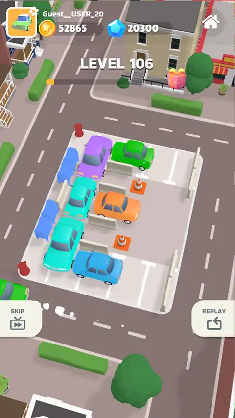 在《ParkingRush》中,你的目标很简单但令人上瘾:引导汽车驶出拥挤的停车场。 你能解开谜题并帮助汽车逃生而不造成更多混乱吗? 这是一款简单易玩的汽车逃生游戏,将挑战您的战略思维和问题解决能力。 如果您喜欢停车益智游戏或解决复杂的停车难题,那么 ParkingRush 非常适合您。 在棘手的障碍物周围解锁汽车并避免堵塞。每辆车都需要你精确的导航技巧才能顺利通过! 进入 ParkingRush 的世界,看看你能以多快的速度解开拥挤的停车场的混乱! 立即下载 ParkingRush,成为汽车益智游戏的终极大师!