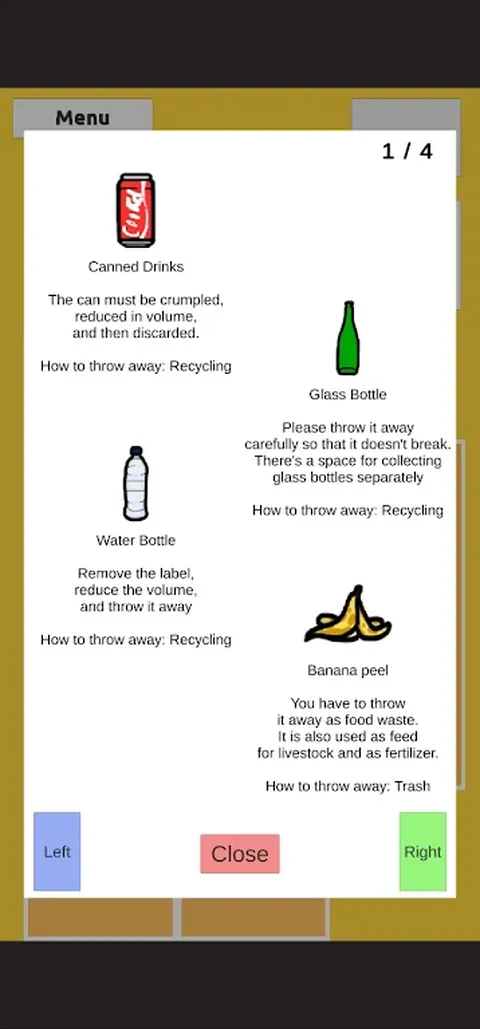 住在国外的中学生。有一天,他通过广播得知地球的环境问题很严重。 主人公决定带头保护环境,跑到自己居住的村庄的一个单独的收集中心,开始单独收集。 根据这个世界观,公寓的每一层都有一个单独的收集中心,这是在那些说自己懒得出去的人的支持下创建的。 尽管如此,人们并没有将垃圾分类并扔掉。主人公努力为别人分类垃圾,但他终于达到了极限,向垃圾工厂老板求助。 在听到主角的情况后,老板将获得一颗“环保子弹”和一颗 BB 弹,以便主角有效而有趣地保护地球。 什么是环保子弹?- 发射后会自动蒸发,由容易分解的成分组成,所以掉到地上半天就会分解 老板要求主角用子弹匹配人们扔掉的垃圾,并将其放入正确的垃圾桶中。 主人公带着征服公寓的决心出发前往一楼.(公寓是一个关卡游戏,总共 10 层。)