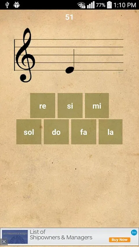 Music Notes Tutorial 是一款简单的小游戏,可让您轻松有趣地学习音符。 在训练屏幕中,音符发声并出现在五线谱上,您必须用正确的音符按下按钮,如果是正确的音符,音符再次发声,这样您就可以训练您的音乐耳朵技能。如果笔记不正确,手机会振动,告密者模式会帮助您用绿色标记正确的笔记。 之后,在一分钟测试屏幕中,您可以在有限的时间内测试您的技能。您的记录将与名人堂屏幕上的日期一起保存,这样您就可以跟踪您的进度。 LearnMusicNotes 支持六种不同类型的记谱法,无论您在哪个国家/地区: 1. 南欧和东欧人(do re mi) 2. 英文 (C D E) 3. 北欧 (C D E . H) 4.拜占庭(或似曾相识) 5. 印度 (sa re ga)