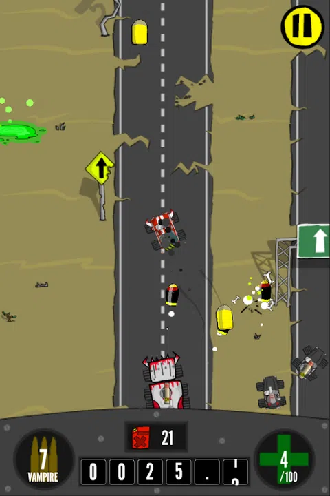 解锁额外津贴和皮肤来定制您的汽车并帮助您延长使用寿命。 装备武器来保卫自己。 面对具有毁灭性模式的大型老板卡车。 收集汽油并升级您的汽车,以比敌人更持久。 超越你的朋友,在排行榜上获得高分。 程序生成的无限后世界末日高速公路;每场比赛都是独一无二的
