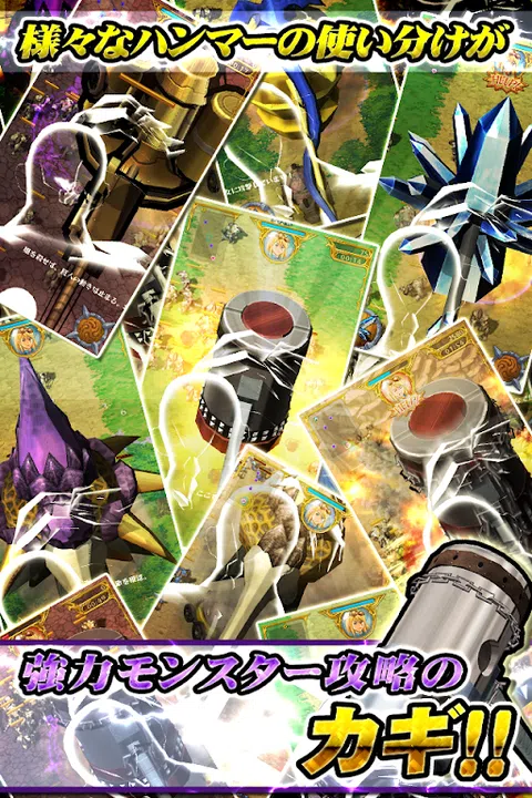 【概述】 《用锤子敲吧!打我!打我吧! 》 给巨人装备一把锤子 “击败”纷至沓来的敌人,“保护公主”,“前进!” 《攻击就是“一根手指”的简单操作》 通过长按敲击并挥下锤子的简单操作来操纵巨人!手机游戏中前所未见的“刺激”“新感觉”动作游戏!消灭无数敌方怪物。 《使用超过400种锤子和物品来捕捉! 》 收集材料,合成进化各种锤子,找到最强的锤子! 根据朋友的成功获得有用的炸弹! 掌握炸弹而创造的动作游戏独有的广泛策略!找到属于自己的策略风格,享受“成就感”! “新形象!掌握灵锤! 》 从扭蛋中还可以获得拥有“灵”特殊力量的【灵锤】! 用锤子攻击后,灵魂会帮助巨人进行各种额外的攻击。 《参与日常活动,领取豪华奖品!》 》 在《巨锤》中,除了作为游戏基础的“故事模式”之外,还有用户争夺分数排名的“事件模式”。 合成锤子不可或缺的稀有材料将赠送给排名靠前的获奖者。 【游戏特色】 ▼ 游戏史上首次! ?强力的巨锤动作,必看! ▼ 通过简单的长按操作来操纵巨人,消灭无数敌方怪物。 ▼ 击中、击中、击中敌人群。简单却又深刻。 ▼ 你是一个失去了心的英俊巨人。保护行走在边疆的傲娇公主! ▼ 还要关注公主和巨人的爱情浪漫,一对独特的情侣! ▼ 收集材料来合成、进化各种锤子。 ▼ 超过400种锤子可供选择。找到最强的锤子! ▼ 根据好友的成功获得有用的炸弹! ▼ 如果在活动模式中获得最高排名,您将获得豪华物品。 ▼通关任务和登录奖励的礼物! ▼扭蛋中新增【灵锤】!展现你的精神力量! ▼ 登录奖励中追加期待已久的高级扭蛋券